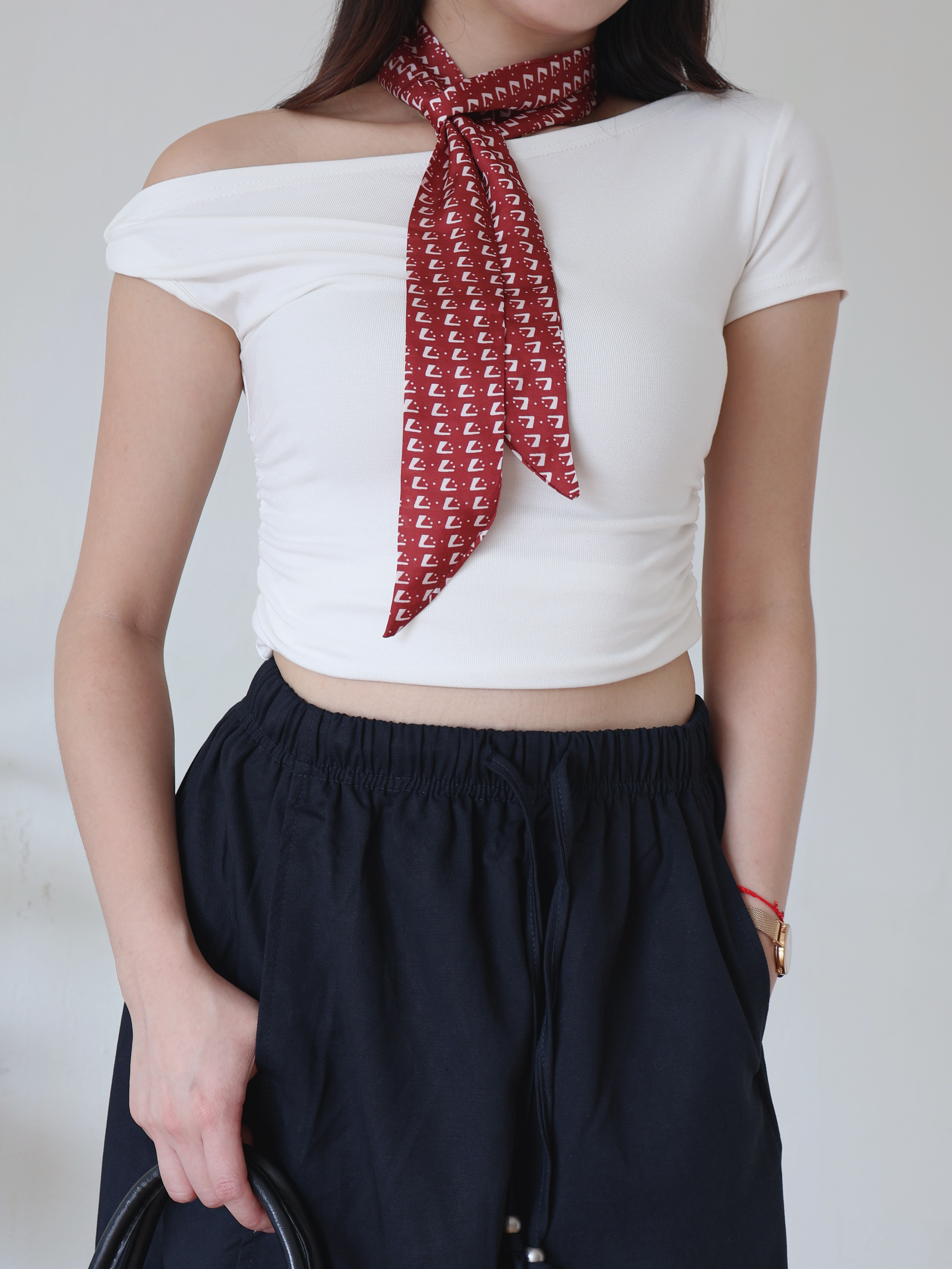 卷边斜肩短袖T | 白 🔗